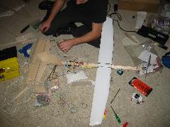 A few months ago Zack and I decided to build an airplane out of one of those cheap styrofoam gliders. So we finally got one, a Cox .049 2-stroke engine, and a radio/servo kit leftover from a previous (totaled) model.